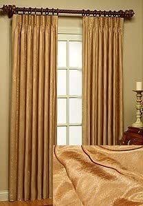 Black and white patterned curtains.