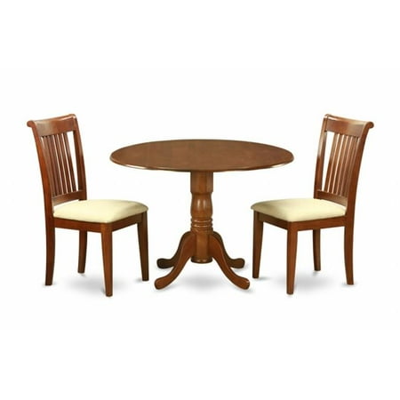 It is available in antique cherry wood finish and comes along with two upholstered chairs.